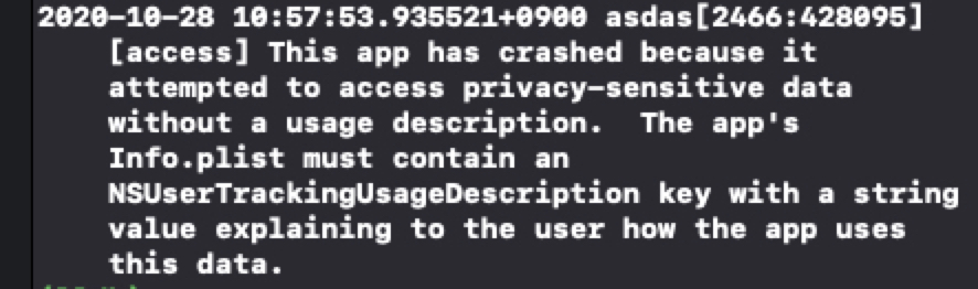 NSUserTrackingUsageDescription 을 Info.plist 에 넣어주고 다시 실행하게 되면?